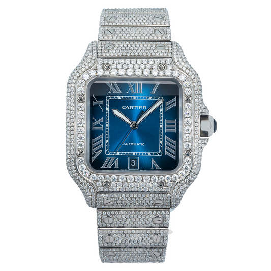 Handset Moissanite VVS 40MM Blue Dial White Gold Bust Down Luxury Watch