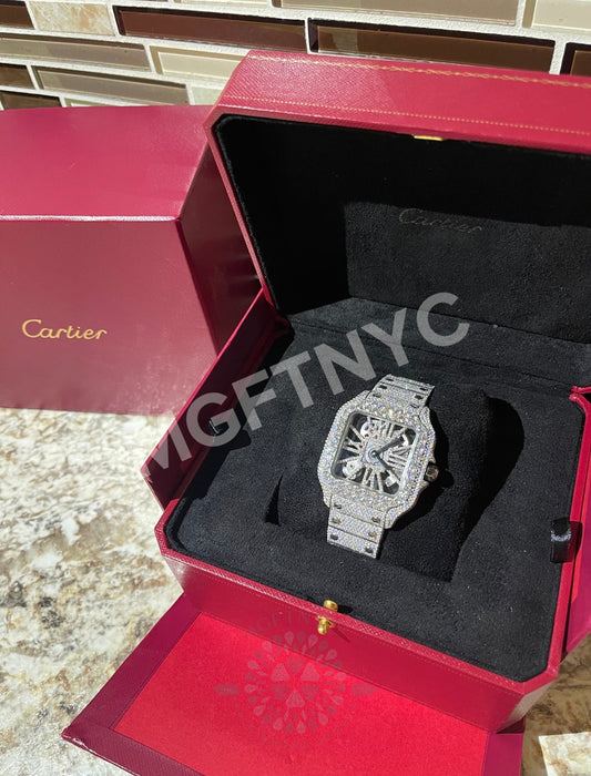 Handset Moissanite VVS 40MM Skeleton Iced Out Baller Square Steel Watch